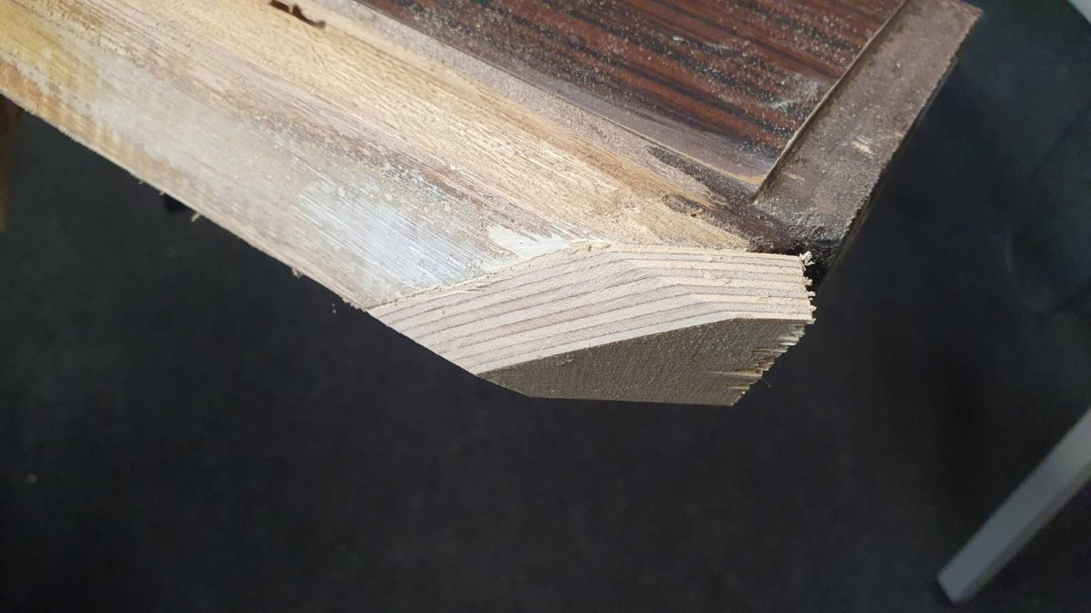 The old miter angles were horrid, something like 146-148 and the pockets kept denying shots down the rail all the time. The 5/16" plywood extensions are already in place (pics or it didn't happen) and cut with a japanese pull-saw (which i can't recommend enough). My plan is / was to assemble the rail frame with pockets and mark the new miter angles all at once. Object is to have 4 3/8" corners, 4 7/8" sides with 3/16" neoprene facings, 141 degree corners and 102 degree sides with 12 degrees down angle (because the shelf depth isn't that much) which I have gathered is pretty much the standard on a GC subrail extension. My table is not a GC, but very similar. I have a good miter saw than can do the miter and down angles.