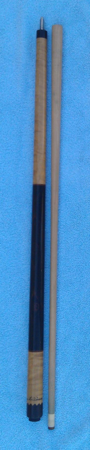 Have a very nice Crown custom cue w/ Varney shaft. It's a great wrapless cue made by Gene La Viness that comes with a Varney shaft that is extra long- 30 inches. Beautiful curly maple with cocobolo handle that has some really nice figures in it. Very stiff hitter for those who like a hard hit. Cue has little play and in great condition, not dings or dents. Straight together and apart.