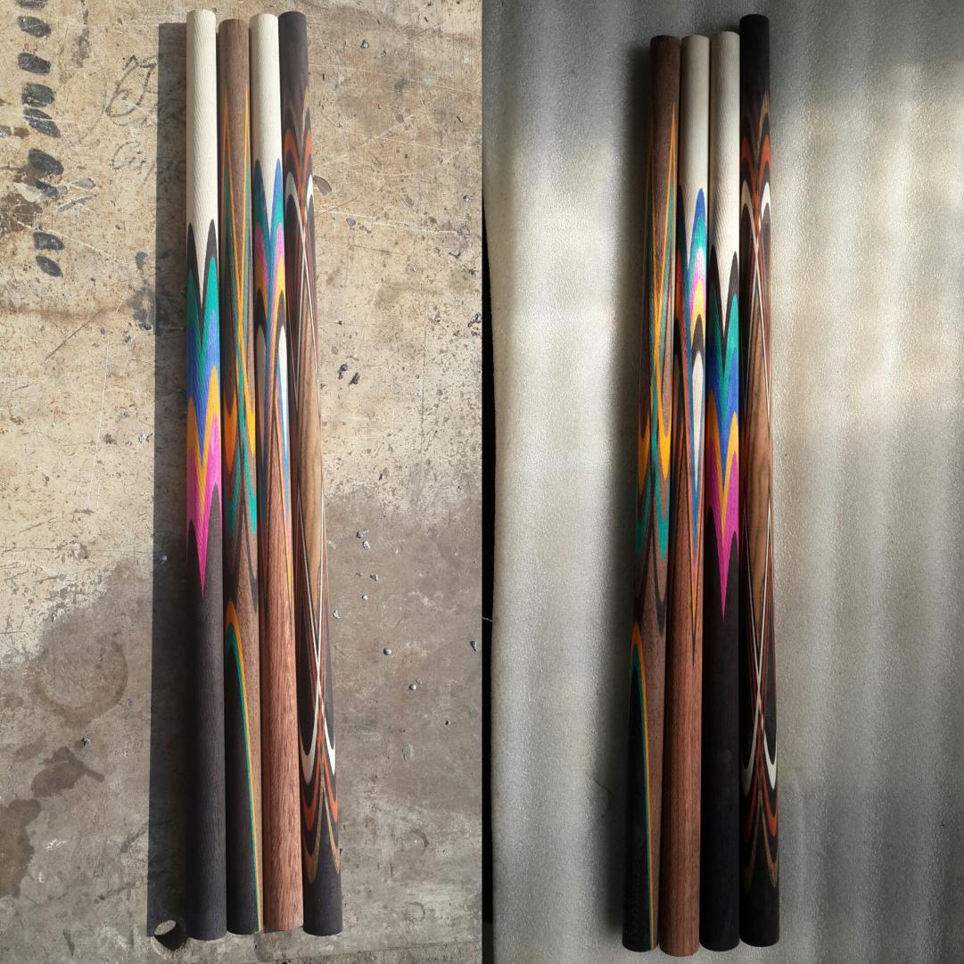 i bet he crafts different blank length for pool/snooker than for pyramid , and can use pieces of a blank to make the "joint area"/ 1st part of the pyramid shafts , which are almost always butterfly spliced.