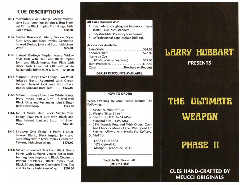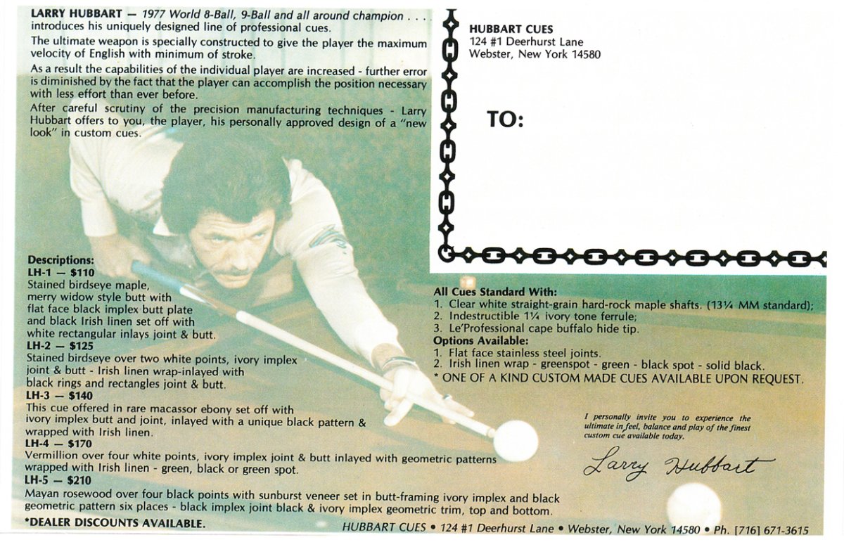 Please post brochures and ID markers of cuemakers and cue companies for easy identification. Examples..Shown.. JV