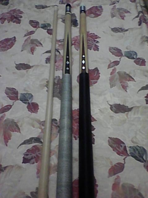 Anyone here care to share what they know about these cues and what they might be worth in today's market? I acquired from a guy who said that a member of his family made these cues out of New Jersey.Seems there's very little info on this cue maker on the internet. There's two butts but only one matching shaft to go with. I haven't had a chance to hit a ball with them but am curious to know what they hit like. Any info on this cue maker would be appreciated. Thanks