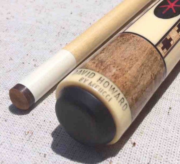 So I picked this Cue up for $80 yesterday. I’m fairly certain it’s a DH3 Meucci. Only a couple of things that are not there that make me wonder a little bit. There is no by Meucci under the David Howard lettering. Also there is a slight difference in the ring work on the shafts. They are two different sizes so I’m inclined to think that this might be to differentiate them when you’re pulling them out of a case so you don’t have to pull them both out to see which one is shorter. I defer to the experts.