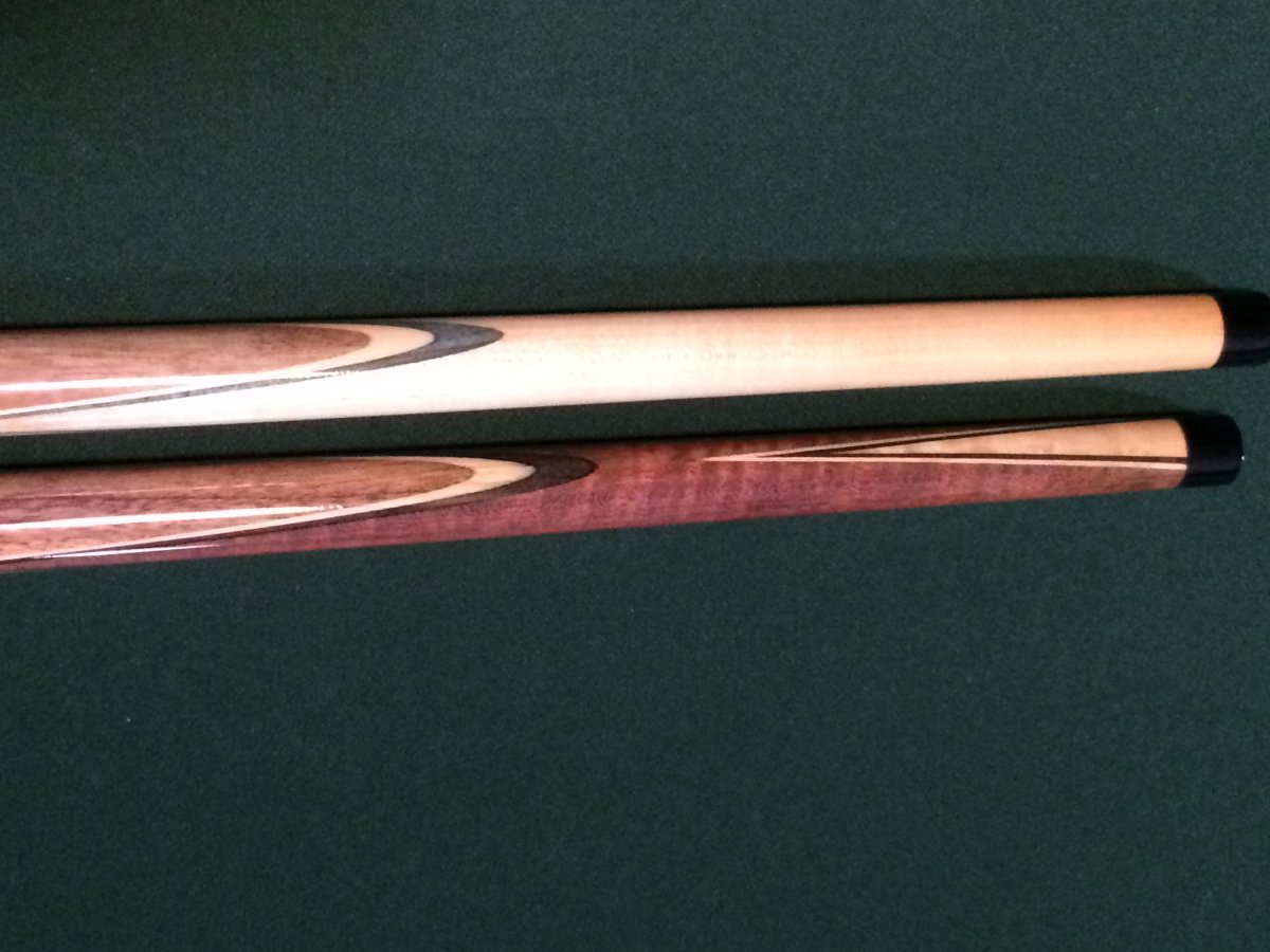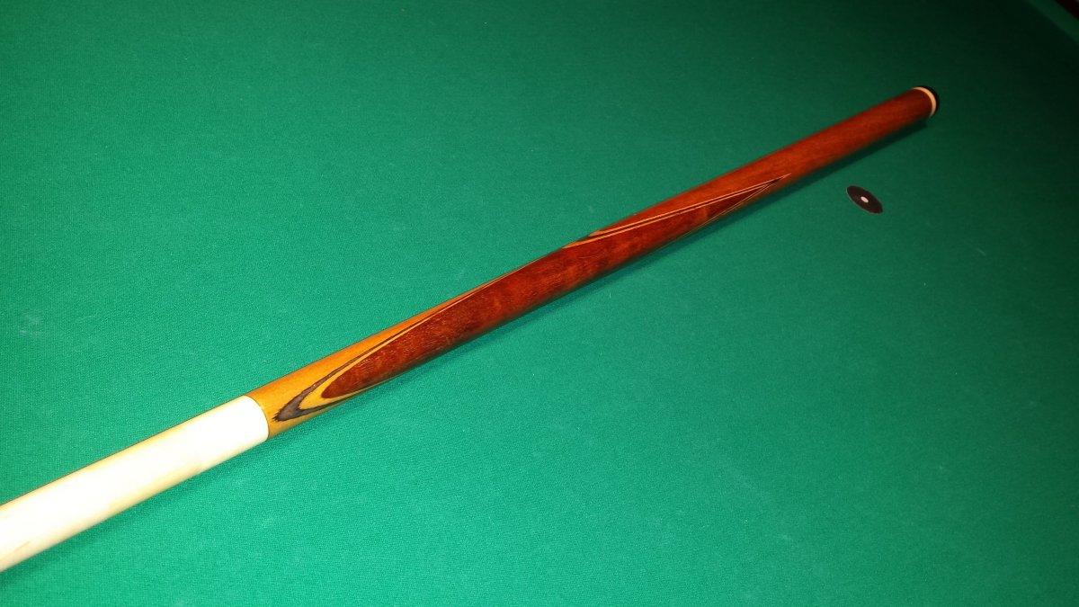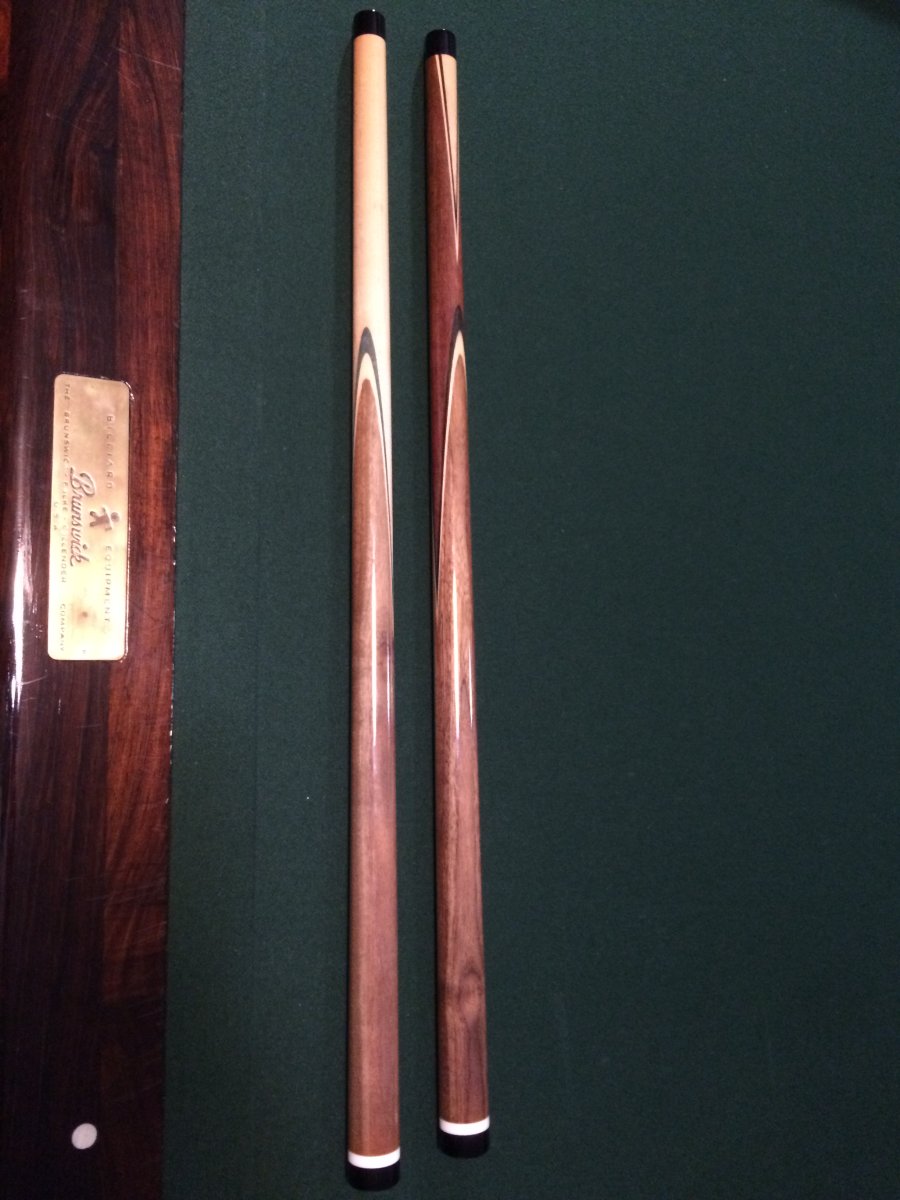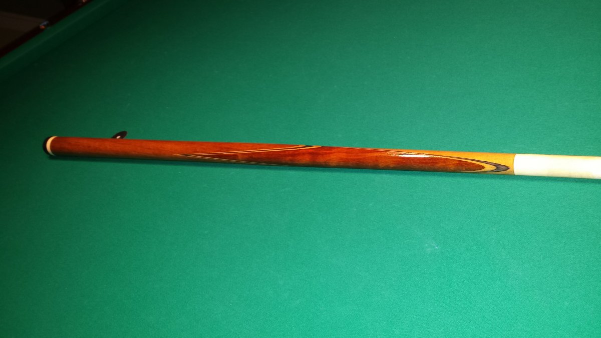 I have it's long lost cousin, this one started out as a one piece. I agree as to the age and I am sure it's American made. I got this one a few months back from an avid Brunswick collector, I seen pictures of his collection, very very nice but that does not make me believe this is a Brunswick.I recently found a cue like yoursView attachment 643464 at a yard sale and sold it shortly thereafter. My cue was most probably 1950s - thee were a few companies that made these splice cues, some were sold to Brunswick for their own retail purposes, as far as I know. The older cues features a brass joint on the butt and black joint collars on the butt and shaft, the pins were usually 5/16 14 or 18.