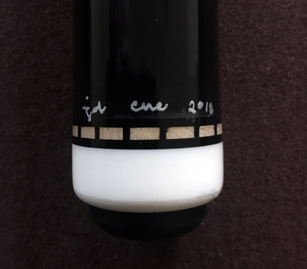 It has ”Tucker”, written in cursive on the butt cap. This one also has the year “2000” written. It is the only Tucker I have and it is one of the first five cues he ever made, so I don’t know if he used any other sort of marking on his subsequent cues.