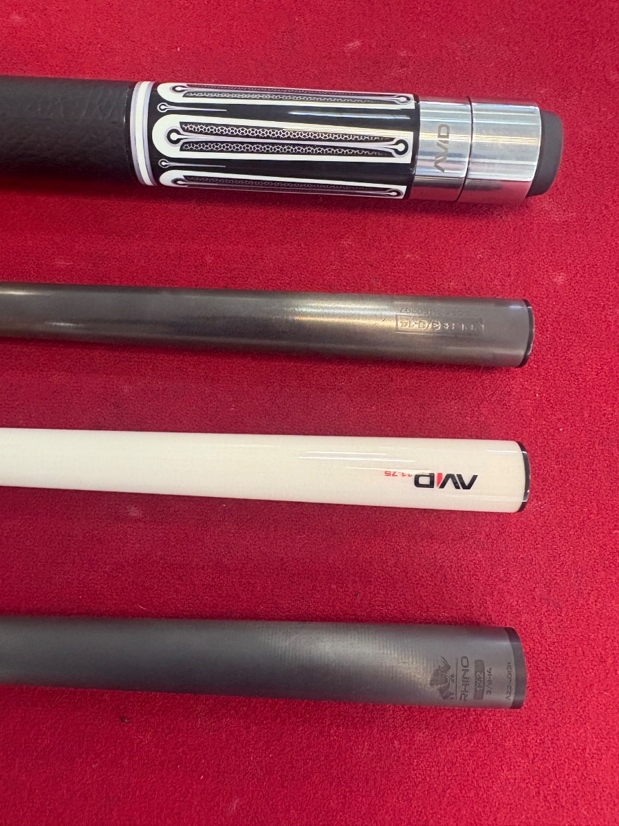 All cues are Cuetec joint, 3/8x14, 21.3 mm (Rhino is 21.4 mm but basically same thing, minuscule difference when put together). Will ship next business day, can send extra weight bolts if requested. Spent 900 for everything and it’s all in great condition, ended up using a different wood cue. First time selling here but the price is fair, message me if you have any questions or offers. Willing to sell separate as well, prefer to sell as a package but can negotiate.