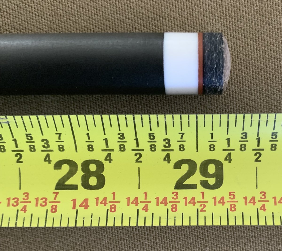 Used Cuetec carbon fiber shaft. Very good to excellent condition. No scratches, gouges, etc. Perfectly straight and true. Joint diameter is 21.35mm or .840. Length is 29-1/4". Tip diameter is 12.45mm. Tip is water buffalo. Weight is 3.75oz.