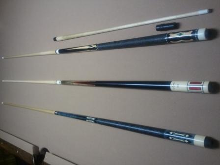This a realy nice Earl Strickland Cuetec warp resistant fiberglass cue. The butt has a blueish/grey stain on the wood. The shaft is a 13mm Maple/Fiberglass. The butt has 2 very small dings butt other than that it looks brand new. shaft and butt roll straight together or apart.