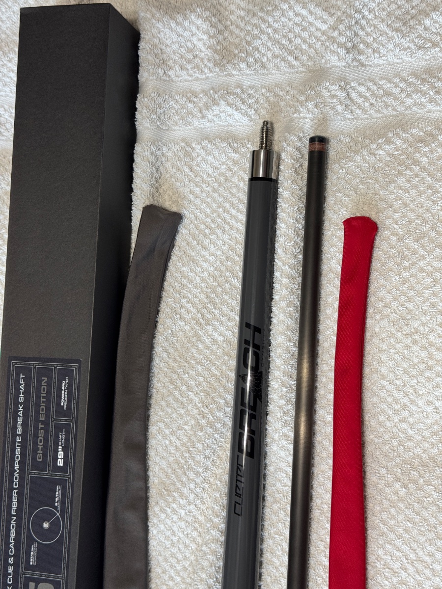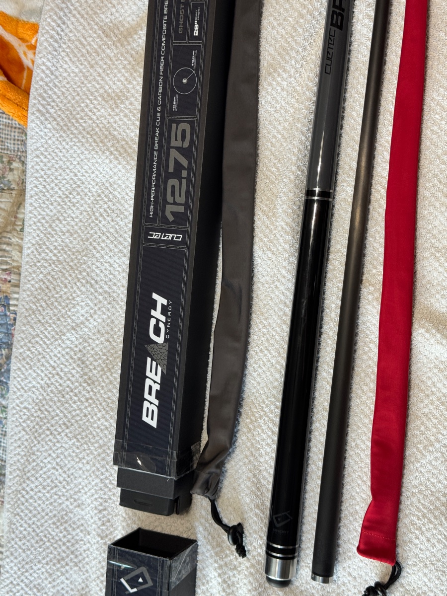 I have a extremely nice test hit cuetec ghost edition breach break cue with original box and cuetec shaft wipes this things breaks fantastic and at a great price of $550 and will ship buyer pays shipping