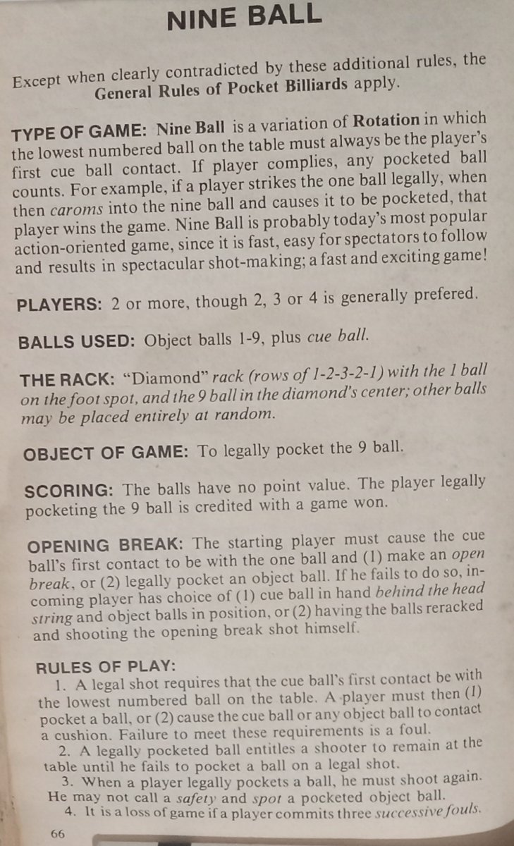 Hello all, I'm interested in the history of 9 ball rules, but I don't know where I can find official documents. I know WPA has official rules, the older one effective 2016 and the new one effective 2025. But I'm not able to find any other official documents for the time before 2016. Does anyone know if there's an archive or have access to past offcial 9 ball rules?