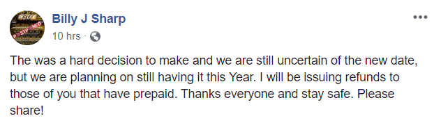 You can add the Texas Open, held at Skinny Bob’s in Roundrock, to the current list of postponed tournaments. Just saw the announcement today on Facebook.