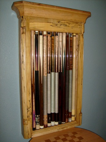 Many of us have spent thousands, even tens of thousands of dollars buying extraordinary cues made from the finest artisans, only to store them in closets and gun safes hidden from view. Don't these pieces of artwork deserve better? I started building cue display cabinets out of necessity when I found that there wasn't a quality commercially manufactured display cabinet readily available. After making my own, I found there was a demand for cabinets but little to no supply. I've made somewhere between 30 - 40 cabinets, selling them all. I've found shipping to be the most difficult aspect of the transactions. In the past couple years, I have changed my shipping methods and packaging, resulting in no damaged cabinets at delivery. Unfortunately UPS no longer allows me to ship glass but It can be cut and fit in any local hardware store for around 10 dollars a door.