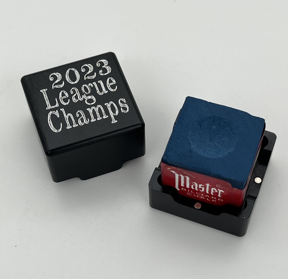 Personalized pool cue chalk holder. Aluminum pool cue chalk case. Engraved chalk holder.