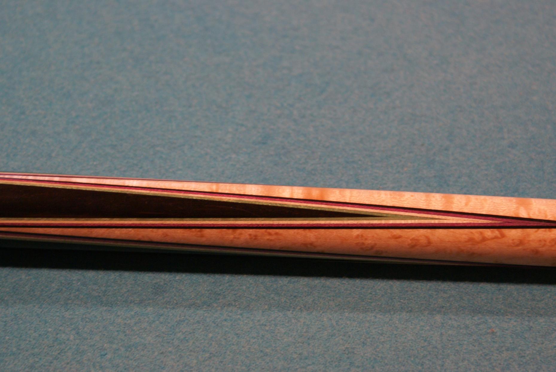 This cue is in very good condition. Butt is like new. One shft rolls straight and one has very slight table roll.