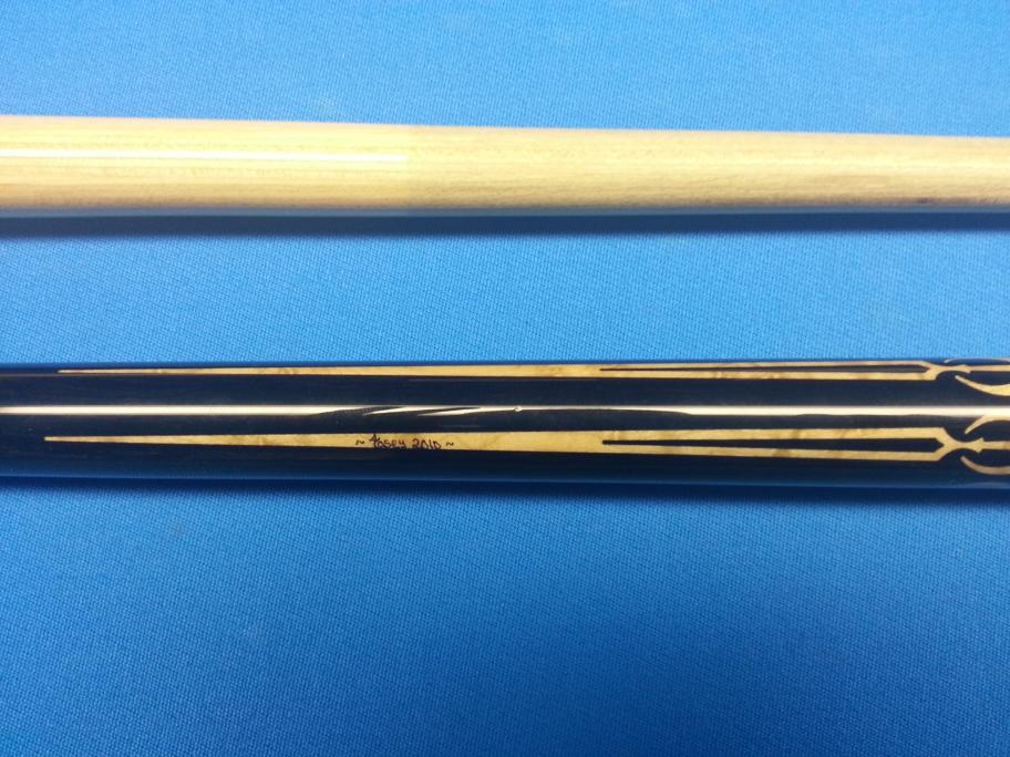 Selling custom ebony with birds eye maple inlays and mop sheilds. Cue weight approximately 19.6 oz. With 19" balance point. Comes with ob classic shaft 30" clear black kamui s tip. Cue is used. Plays very well. Radial pin. Butt near end is 1.20" thick...asking $1000 obo.