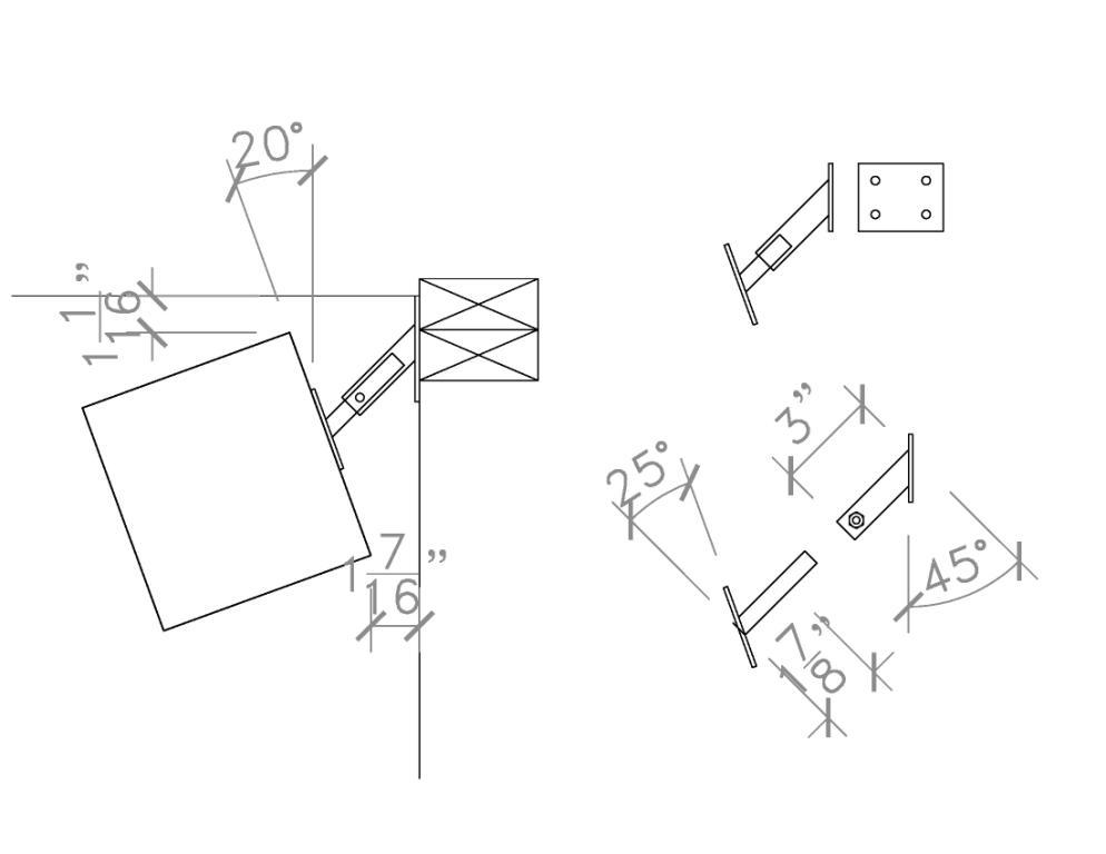 I designed the top tube cut at 45 deg and the bottom rod at 25 deg so they cancel each other out to give me 15 deg for the Speaker angle.