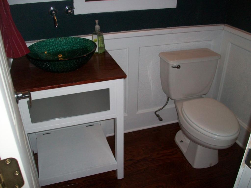 Sorry guys, I've been busy with others things. My parents 50th is at the end of the month and we have been planning a huge party. And since I've started this tread I have tried to post weekly updates, and I know I haven't this week. There hasn't been much progress lately. This past weekend I re-sanded the entry door and painted it again along with the house front door so they could match. I also did a little work on the top shelf of the Bar and my wife hung up some Bar decor. I finished the bath chair rail, installed the toilet and bath hardware. I also got the cable hooked up (just need a TV). I'll post pics of what I have tomorrow.