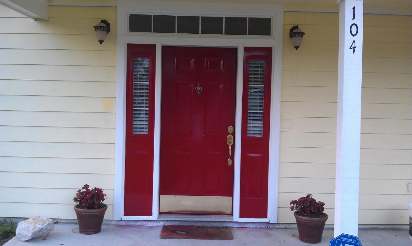 I sanded the door a few weeks back and re painted it it along with the house entry door to match. The wife wanted the side light spainted too. It was fine the first time but I used a brush with the enamel paint and it left brush strokes, and as shiny as it was it reflected badly so I decided to spray it on instead.