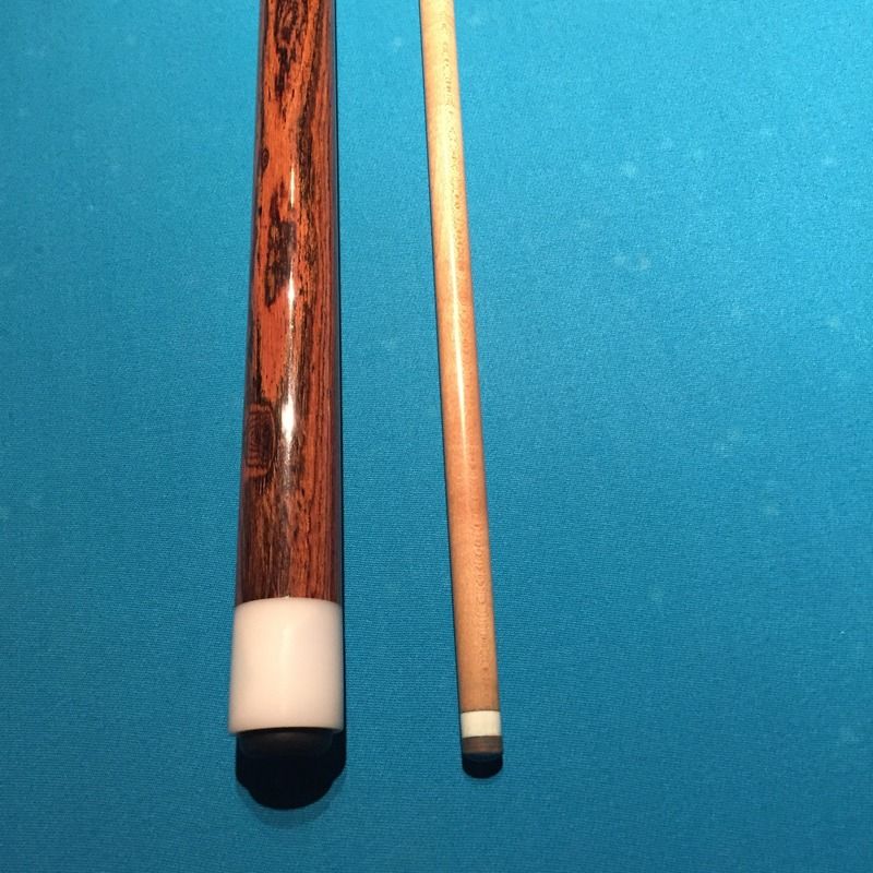 60" even 30" split Custom Hank Ngyuen Purple Heart and Bacote Sneaky Pete. It has a radial pin with a newer medium Kamui tip. The butt is 16.8 oz and the shaft is 3.7 with a 11.75 mm diameter shaft. It has a maple shaft but is pretty low deflection due to the taper. It rolls straight together and apart. PRICE DROP $200 shipped