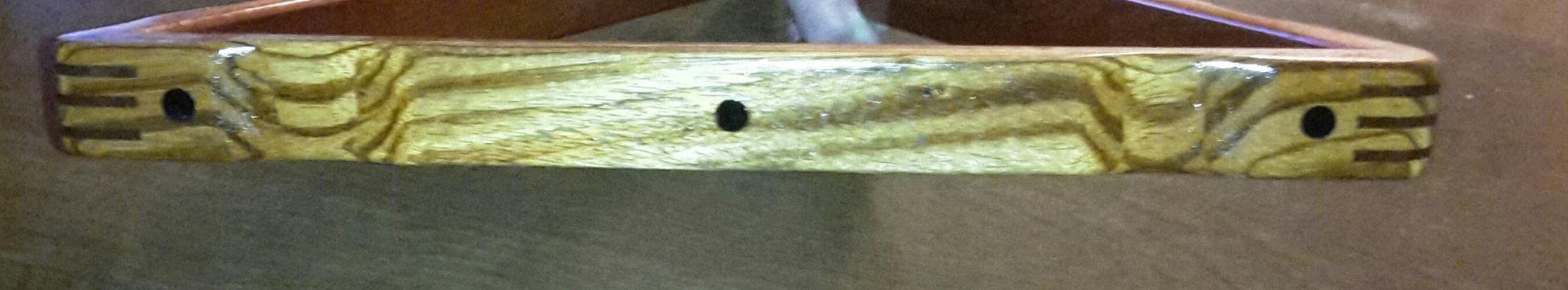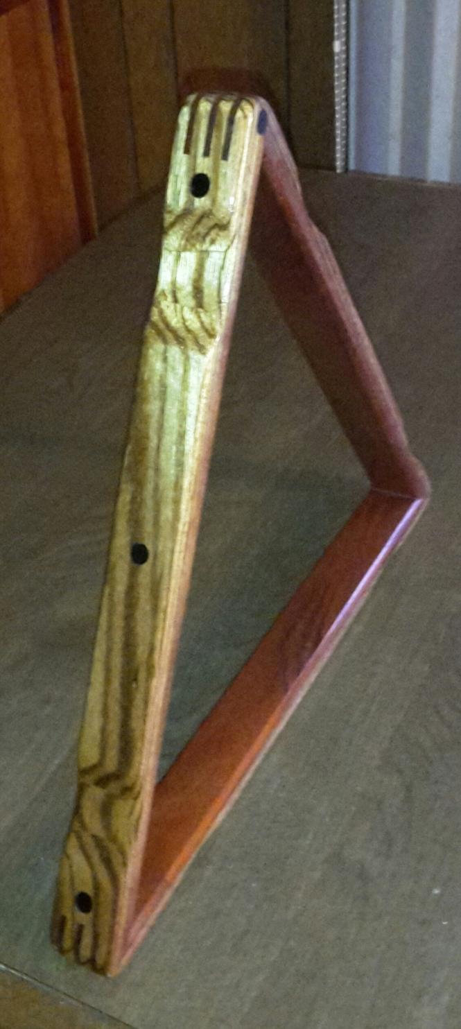 This triangle is made from kiln dried zebrawood and mahogany, sliced and glued together to form a distortion free rack for many years of rugged use.