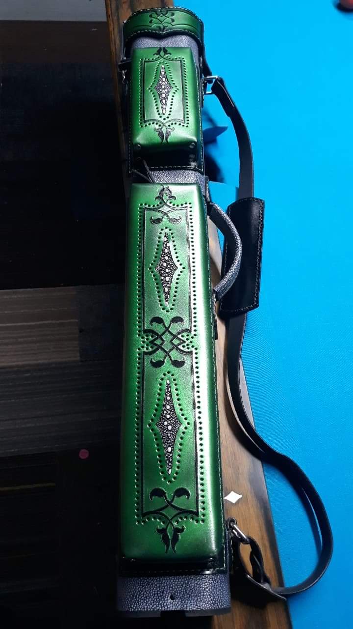 looking to trade for a jb black with bright green stitching plus cash a jb plus 3 8 10 cf shaft any jump cues with green especially burl playing cues with green ill make someone a good deal let me know what you have message on here or 6362352071