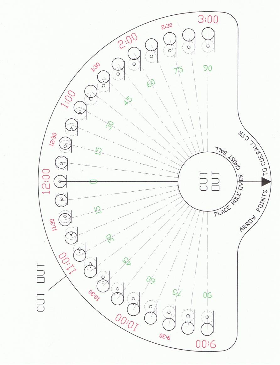 On the table, place the cut out circle over the ghost ball, while pointing the arrow back to the cueball.