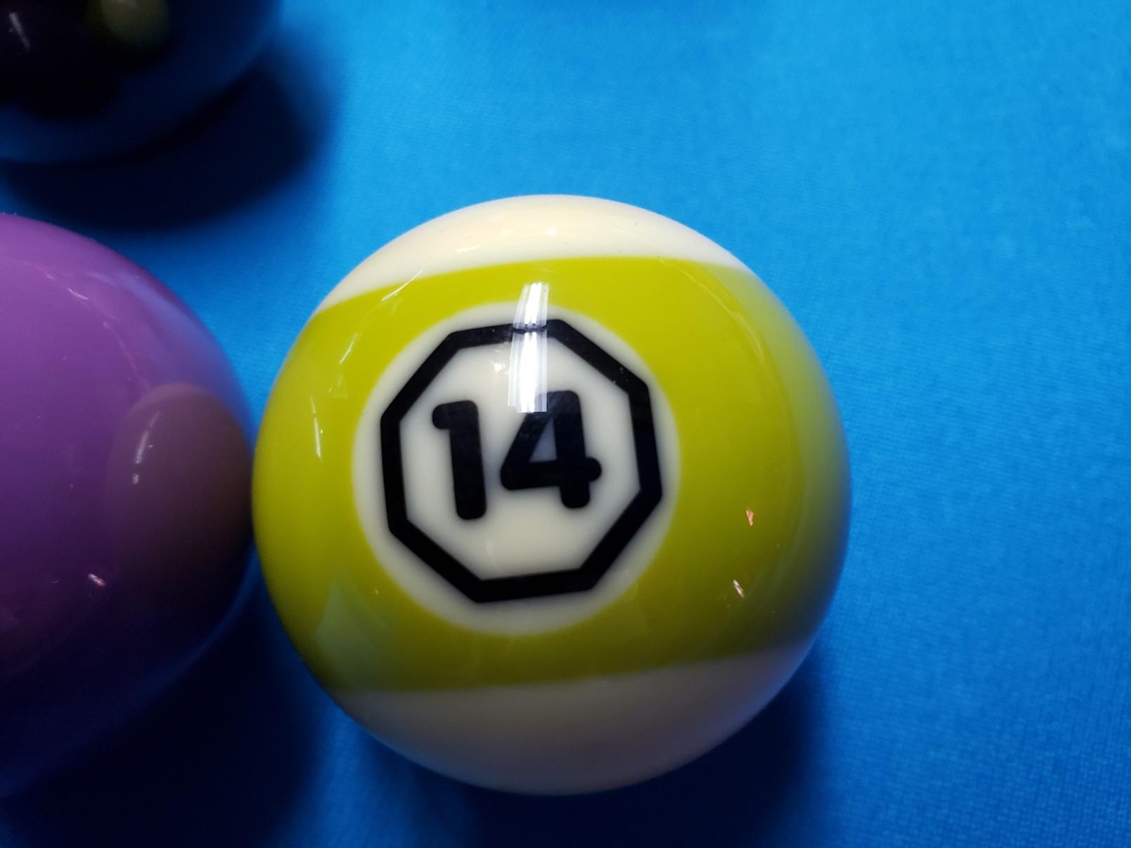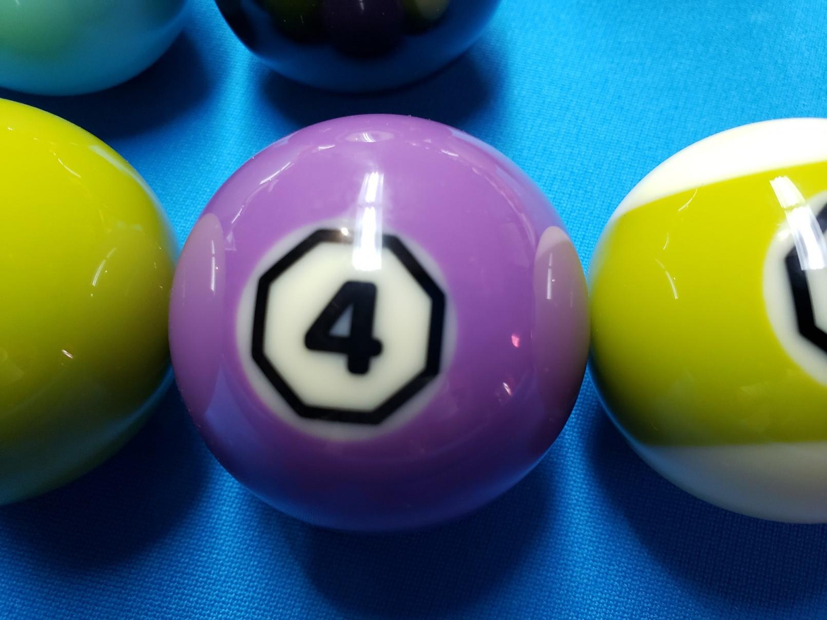 Beautiful immaculately maintained home table and cloth are far more impressive to me than the balls! The big numbered money balls look a little tacky, but as they are thrown in extra, you can't complain. I'm not crazy about the cue ball with both circular and square shaped red spots on it.