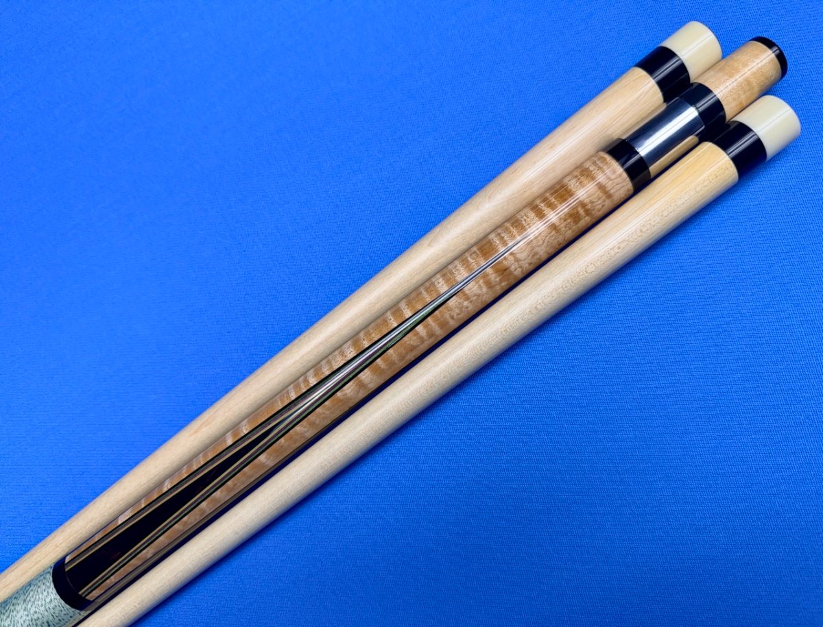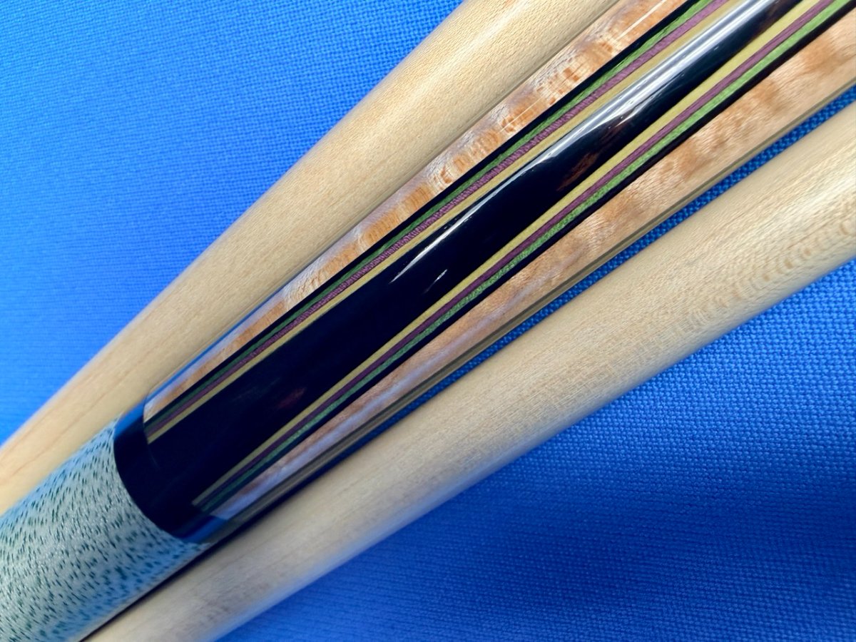 Here is a rare bird... a Danny Tibbitts cue out in the wild. Ebony into Birdseye Maple traditional cue. Cortland linen wrap. Fancy matching joint caps. This one should not last long!