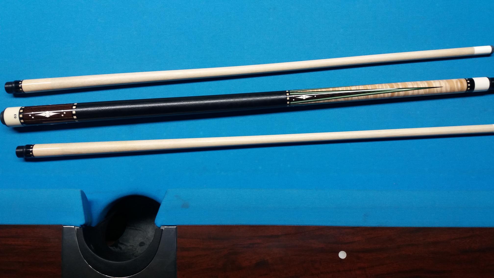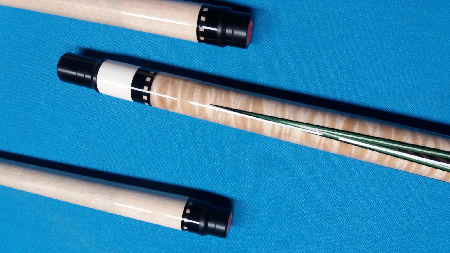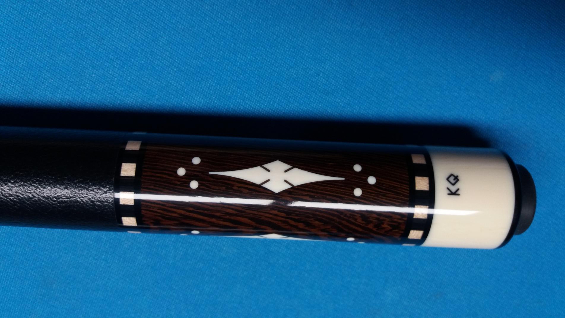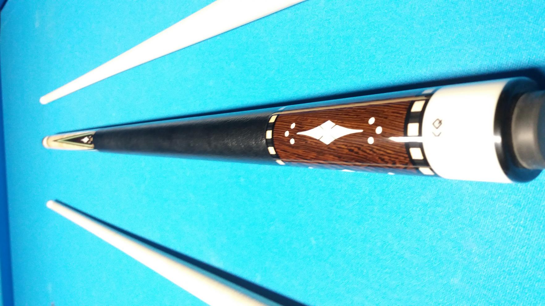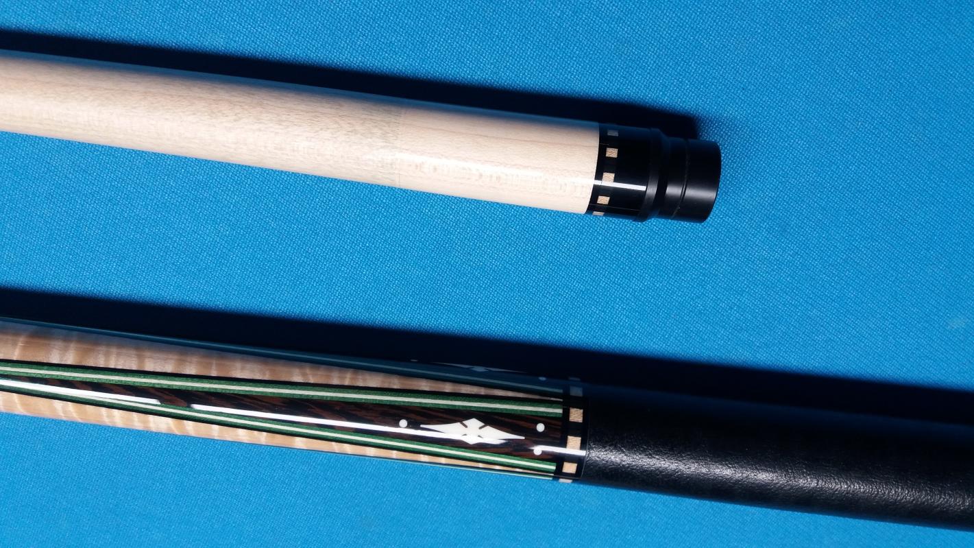 5/16 x 14 piloted ivory joint, ivory butt cap, ivory inlays - notched diamonds and dots; 2 shafts, ivory ferrules; Wenge points into curley maple; Wenge butt; leather wrap; 4 points - 4 Veneers;