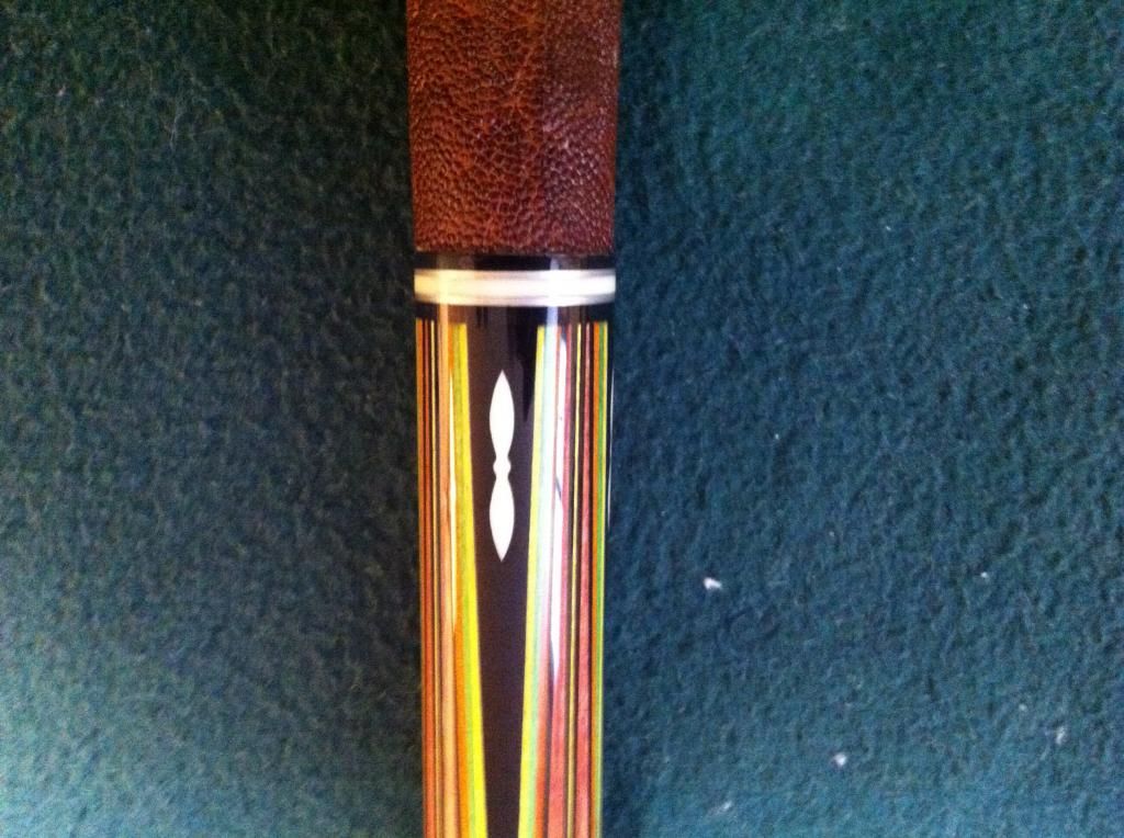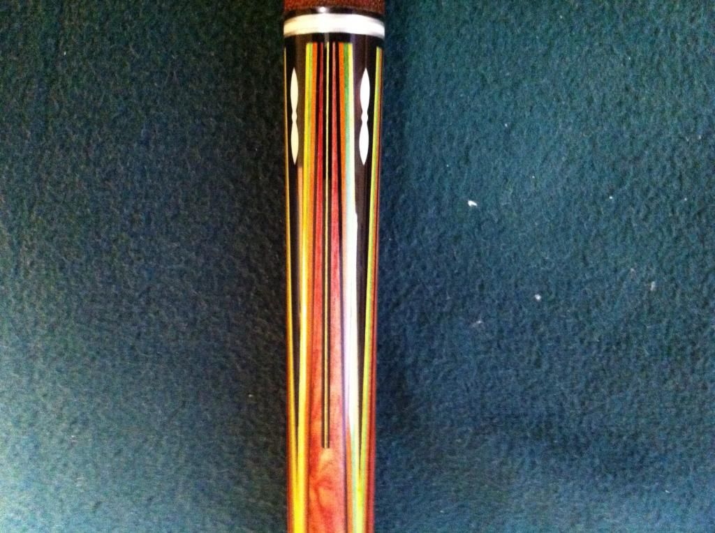 I really wish I could have taken better pics of this cue for my archive and to showcase here but my batt on my hi res SLR camera went bad and I wanted to ship the cue to Davor. You can hardly see the veneer colors with the camera phone.:confused: