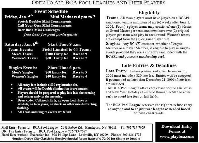 in addition i believe an open 9 ball has been added for anyone to enter. i think it would be great to have our bca 9 ball nationals there next year!
