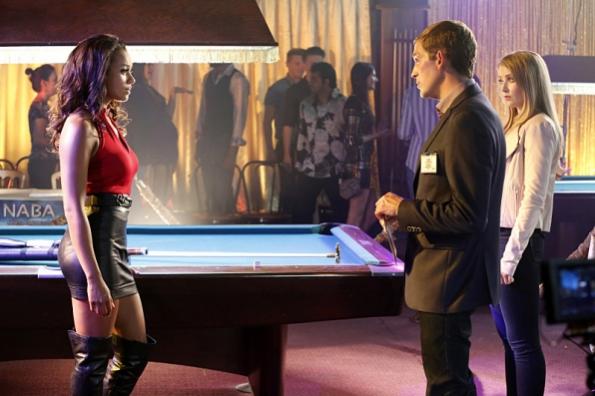 There was also a rundown billiard hall called "Rails" that was run by none other than Sharon Osborne's character. The blond CSI detective, of course, came with the answre as to what the green worsted cloth was because of her previous life as a pool player. :grin-square: