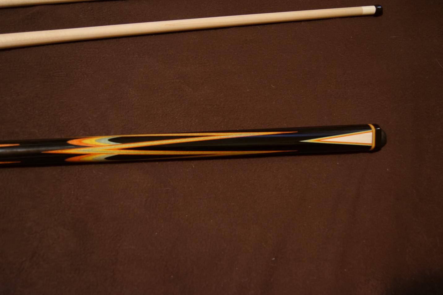 I got in on Deanoc's "Mystery Cue" deal, and what a surprise was waiting for me! This is by far the most amazing display of craftsmanship I have ever held, and for those of you that did not get in on this deal, you missed out on a beautiful Jerry Rauenzahn cue! I wish I was a better photographer, the pics don't even come close to doing this cue justice! This was a lot of fun, and Dean is a great guy to deal with! I'm looking forward to doing this again!