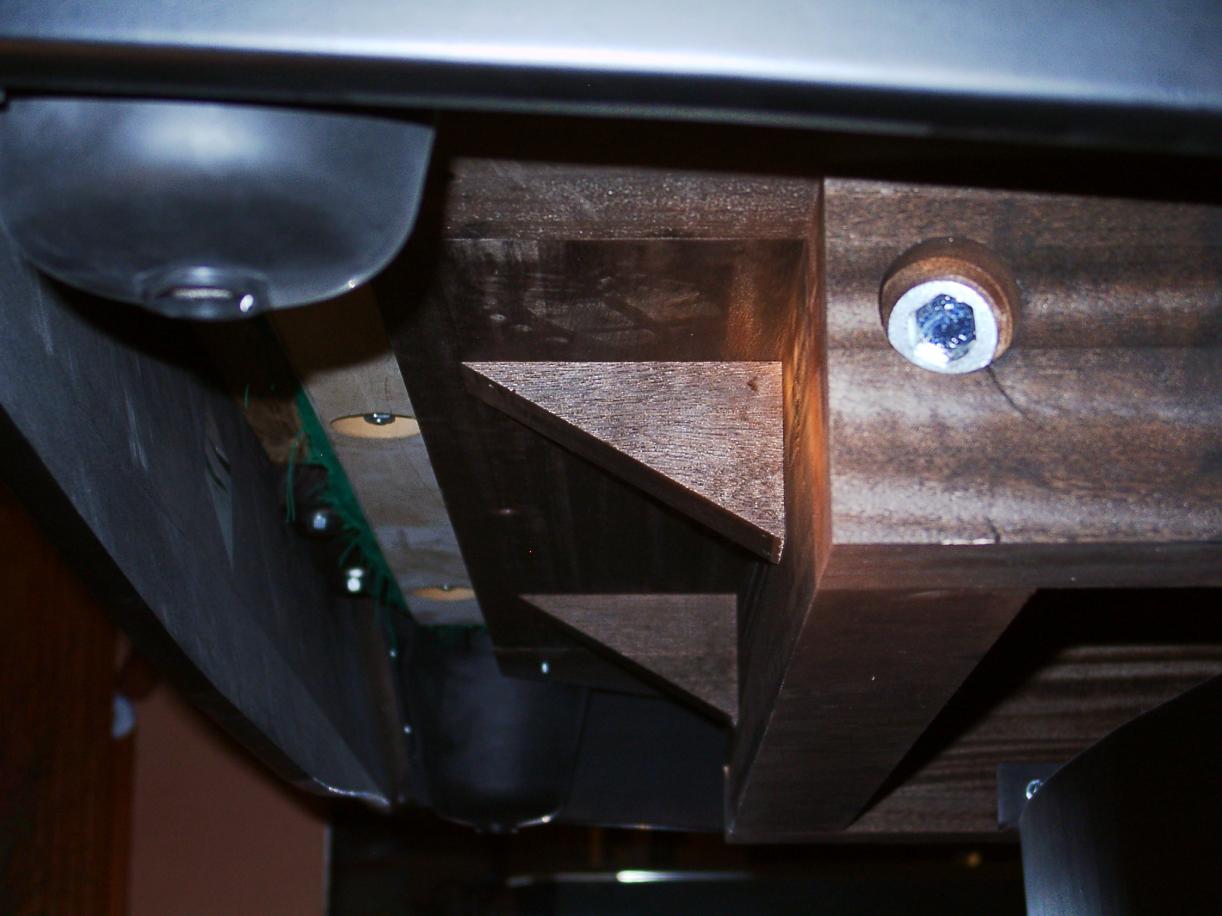 Ah, the plot thickens. The pictures I posted were taken at the foot of the table. It didn't occur to me to look at the other end. I assumed they'd be the same. However, after seeing your post Howard, I took another look. It appears the head end has the triangle braces and the foot doesn't, very strange. I do remember that when they originally delivered the table it came with nickel pocket castings, bronze feet, and the head skirt was for an 8 foot instead of a 9 foot. It took another trip for them to assemble the right parts, (at least I thought they assembled the right parts). However, that doesn't explain why the frame is different on one end than the other, go figure.