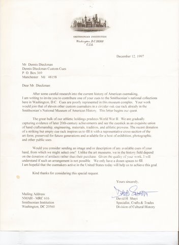 Dennis’s cues tell a story about himself the player and the wood......that is very rare for many and I’ll use his own words in describing it “wood butchers”.