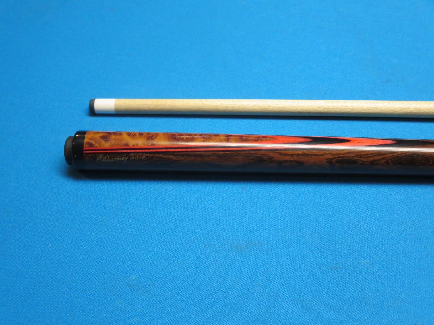Radial Pin. Butt Weight 15oz. Shaft Weight 4oz. Tip 12.6mm. Cue rolls straight apart and together. A couple small scratches and 1-2 small dings nothing thru the finish. Asking $450. Price includes Priority Mail Shipping with insurance and delivery confirmation. This was a local trade in, I will be listing several items today to try to reduce some inventory. Please feel free to pm me with any questions. Thanks JIMM