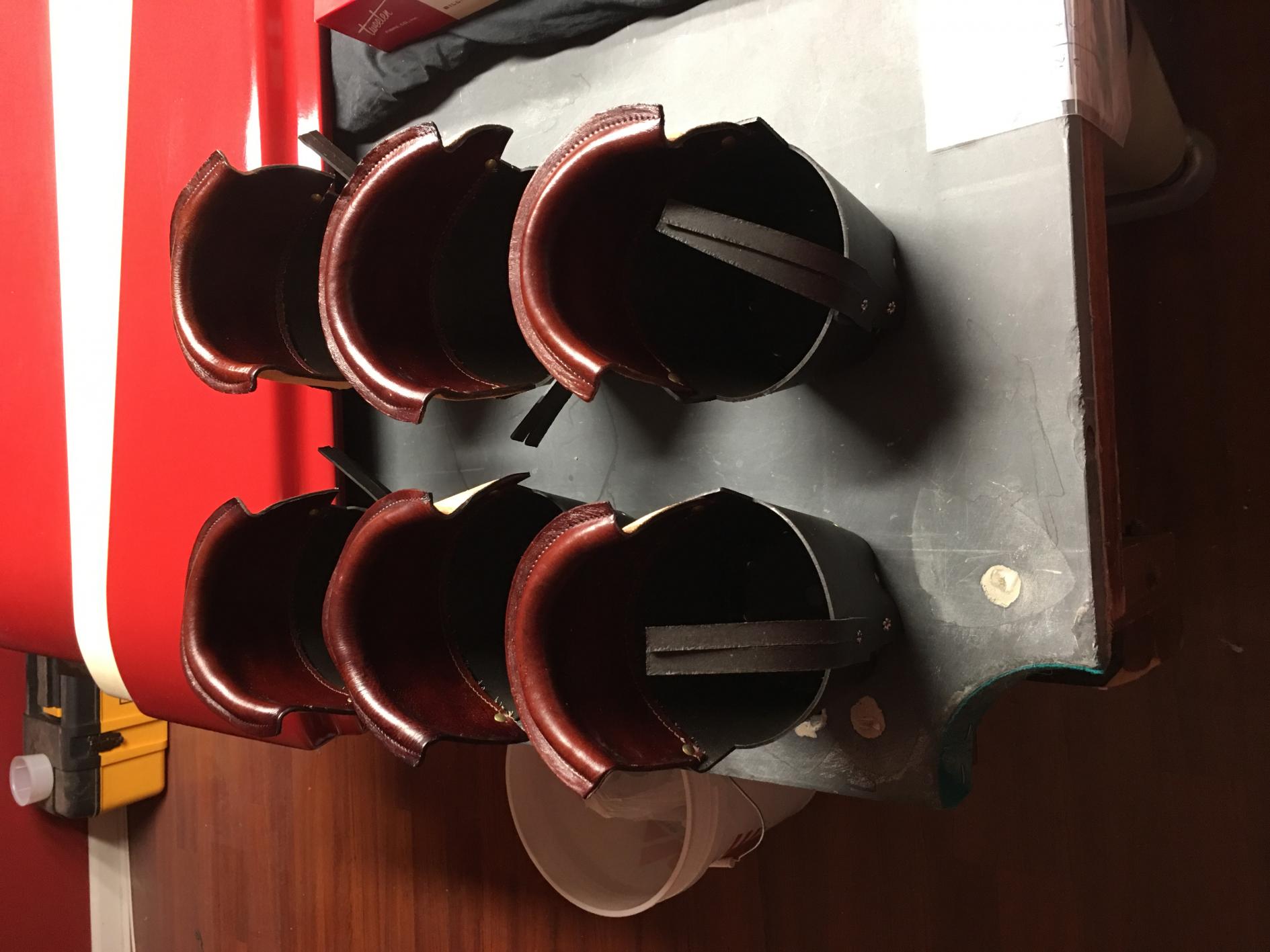 Got in my new pockets today. Brown leather drop pockets from Hood Leather Products. Very happy with how they look now and think they'll look even better installed. Also picked up a cherry stained Diamond rack. The wait is excruciating.