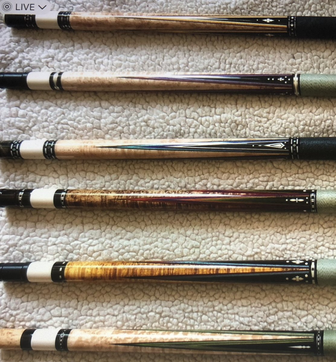 more complete. One is my fancy Bob Owen cue. The shaft collar has 32 inlays & sitting on top of the