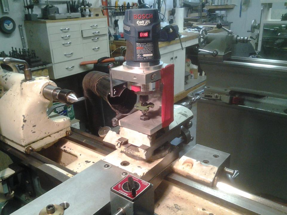 I have posted these before, so you may have seen them already. This was a hawaiian punch jug. My router bracket was a perfect fit inside the width of the jug. It takes about 10 minutes to cut a hole in the jug for the router, cut a hole in the top of the jug for the 4" flex hose (tape isn't necessary if it is a tight compression fit inside the jug), cut access out of the bottom to put the bracket inside (prior to installing the router, and leave that lip for jug strength), cut a hole for the mounting bolt, and of course access holes for the stock.