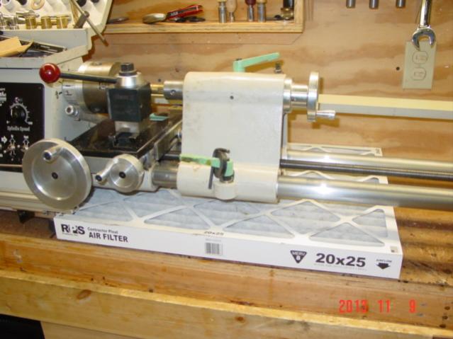 The box just sits on the of the lathe bed and I can move it from side to side if need with one finger.