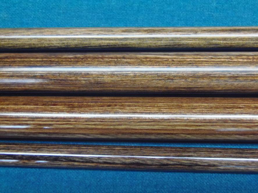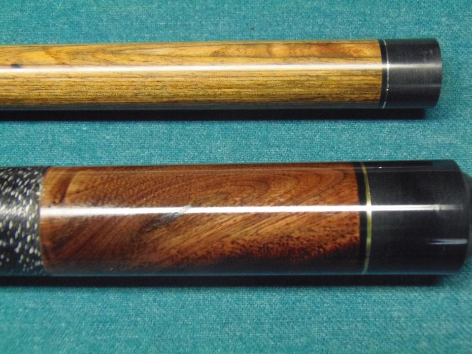 My latest project is a cue with a shaft and forearm of Dymalux, butt of walnut. Also in the picture is my break cue made of Dymondwood. The Dymalux seems identical to the Dymondwood.