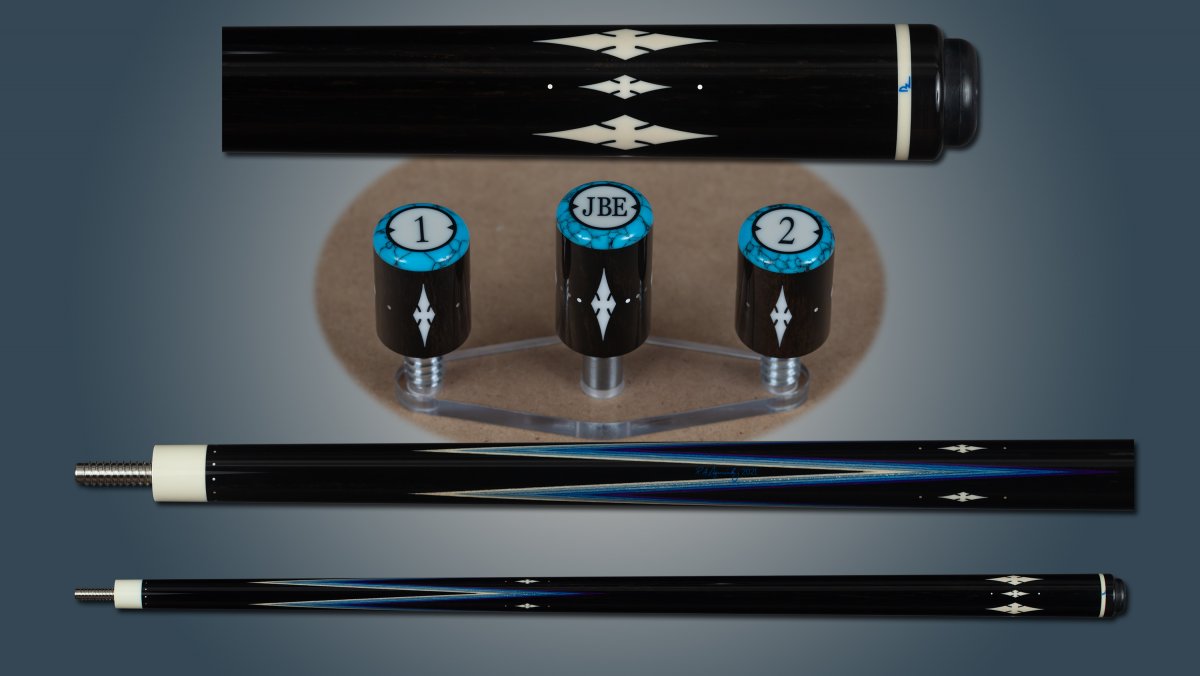 Just wanted to share my experience(s) having a couple cues made by Bob Dzuricky (DZ cues) from blanks made by Kelly Peterson of MVP cues. I have had 3 cues made by Bob Dzuricky and 2 of them were completed from blanks made by Kelly Peterson. I have to give nothing but 100% accolades to both of these gentlemen in turning out a very nice product. The first cue is a FS purpleheart into straight grain maple with Titlist veneers and some old school propellers. I was wanting a cue like this made and Bob already had the blank in his possession that Kelly Peterson had made; Bob finished it out to my 100% satisfaction. The second cue I had made I just received and I had Kelly make the blank using ebony/ebony with blue flame veneers and it was sent to Bob to finish. Overall I could not be more happy. Both of these cues have a old school look/feel to them with some flare. If you are wanting anything cue related built I highly recommend these 2 gentlemen. I will attach a couple pictures below.