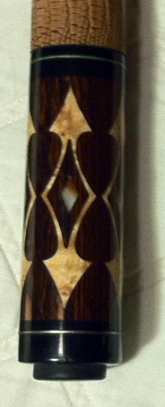 Ebony six pointer into highly figured maple with three long, three short points. Ivory inlays in the points and significant Ivory inlays in buttsleeve.