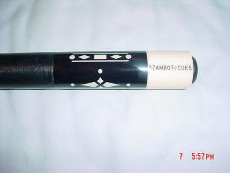 Here is one of the rarest Barry Szamboti cues made ....under (10) ..i think barry said he made 6 . I sold all of my personal collection of Gus and Barry Szamboti and I thought this cue would be a good start to a new one..Enjoy..... Thank You, Ken Carfagno from Highendcues.com