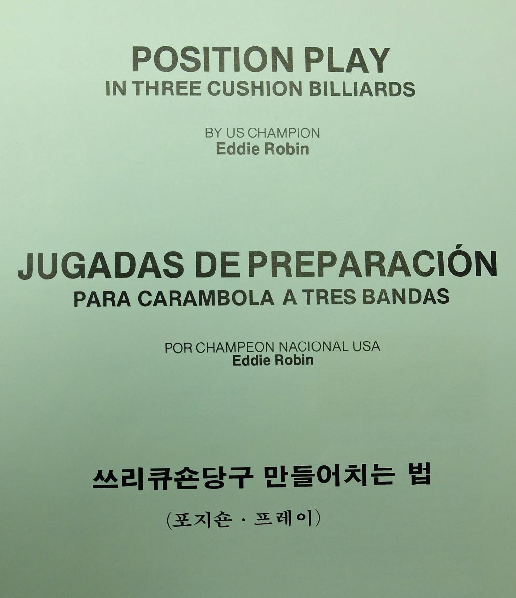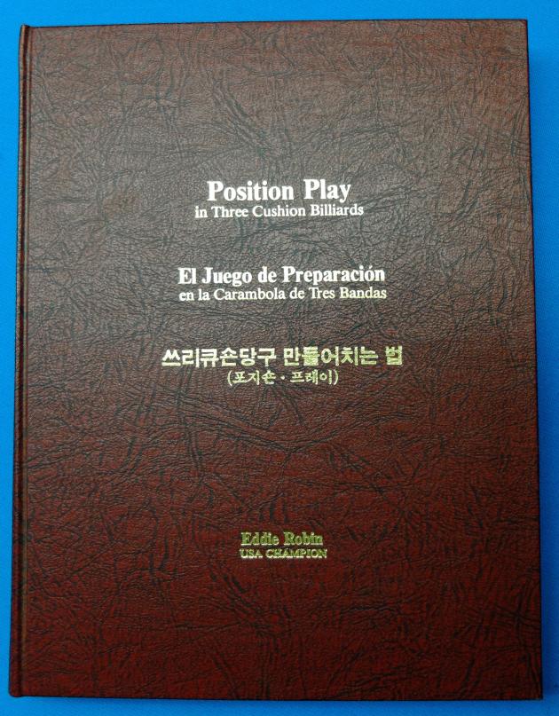 Eddie Robin "Position Play in Three Cushion Billiards." Burgundy hardcover first (only?) edition, January 1980. English, Spanish and Korean. 339 pages. Over 600 illustration. Colored endpapers. Pristine condition. $350 shipped CONUS via Priority Mail.