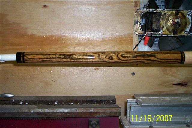 Here is a sneak peek at Edmans twin Bacote beauties. This is the 1st coat of clear pics. They are so close in grain because they are cut from the same larger piece of very figured Bacote. They were Edmans design , and are coming out quit nice. They will also be receiving a matching set of joint protectors.
