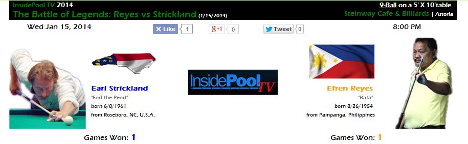 They're off to the races. It's 1-1 now. Keep up with the action and the official Pool-Trax Shot-by-Shot Statistics on our Featured Live Page.