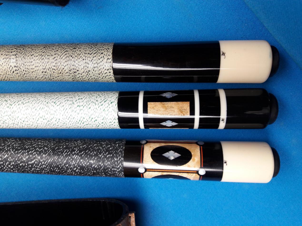 The group changes as I upgrade tips, ferrules, and shafts, on the cues I've picked up recently.