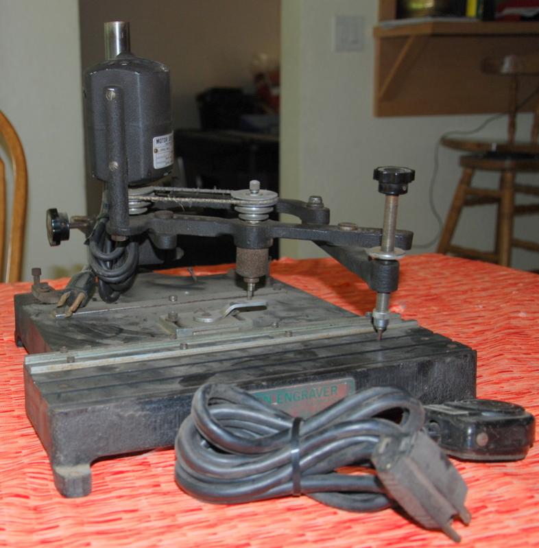 I was doing some summer cleaning of my shop and I found this Green Engraver. It is ran by a foot pedal. Also it comes with letters. It is a model 106. I am asking $300.00 shipped! My paypal is hmalakoff@chartermi.net.