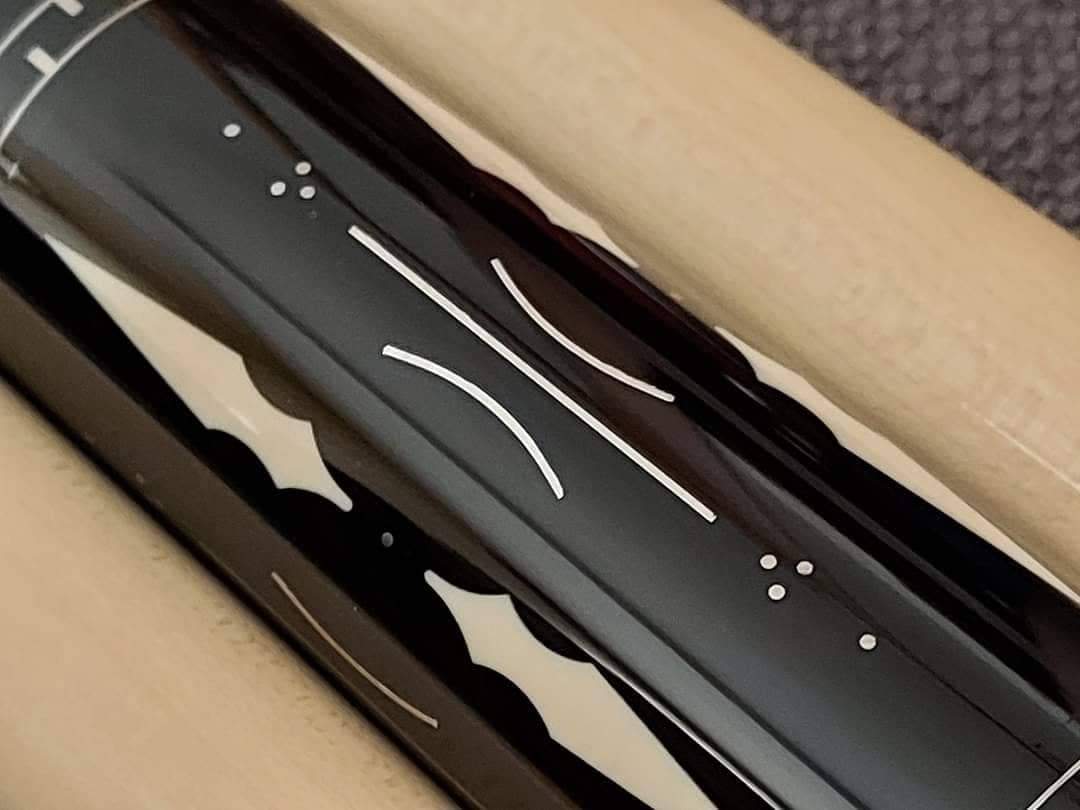 Ernie's "EM" logo and serial number of the individual cue appears on this joint screw.. the "EM" logo appears on every butt cap of every Ernie Martinez cue made since he started his own shop in 1995.