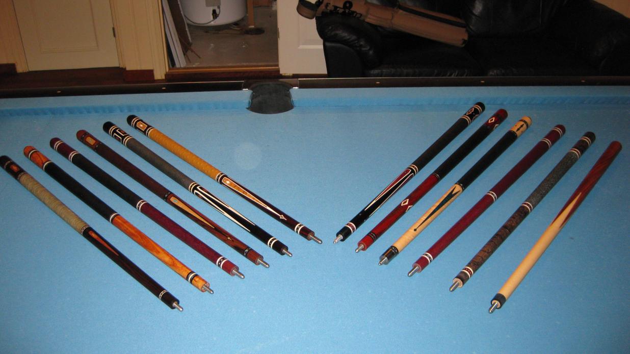 Some nice hitting cues here from great cuemakers: